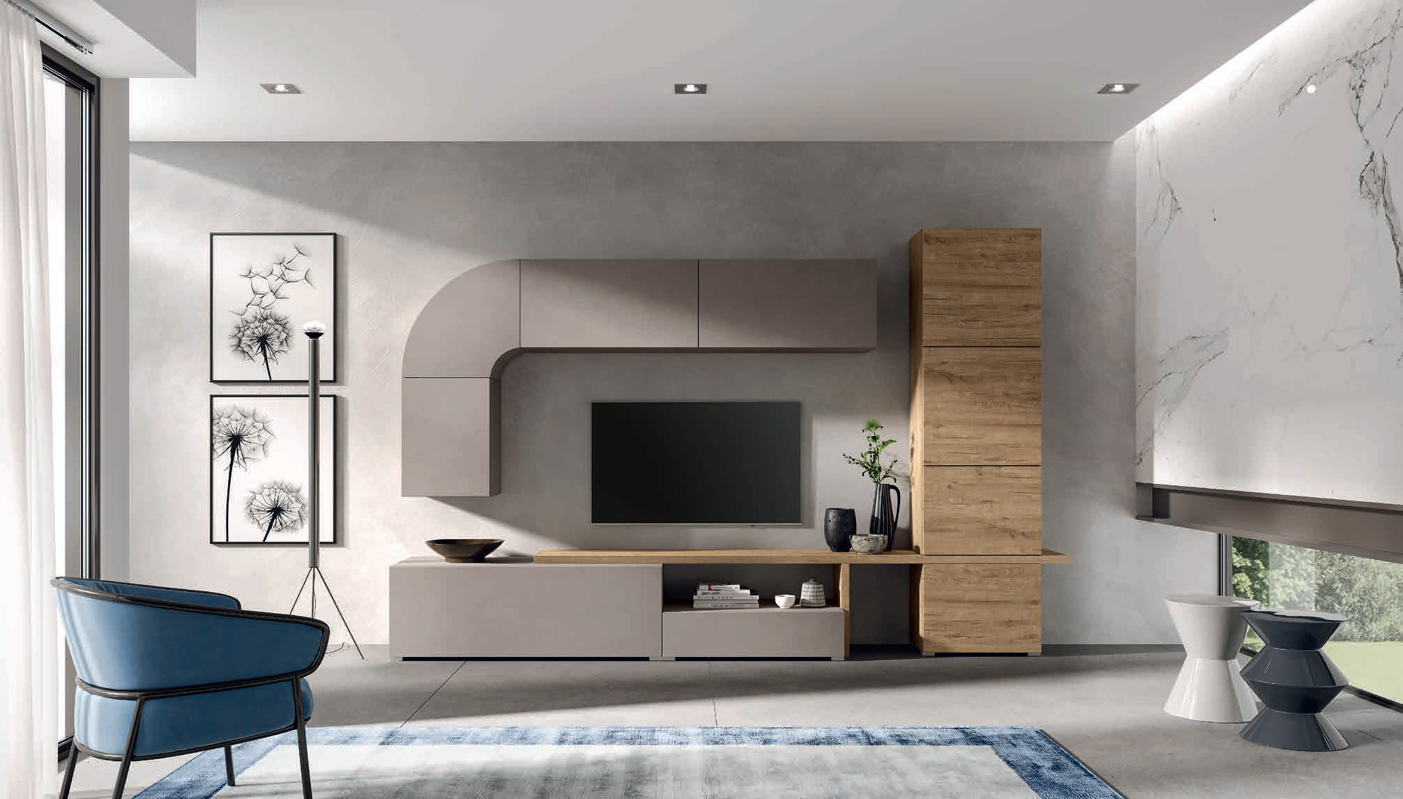 Una zona living strutturata e razionale con soluzioni componibili, cassetti, pensili vetrine, porta tv, infinite combinazioni di mobili per il soggiorno per organizzare l’ambiente dedicato al relax e alle convivialità.